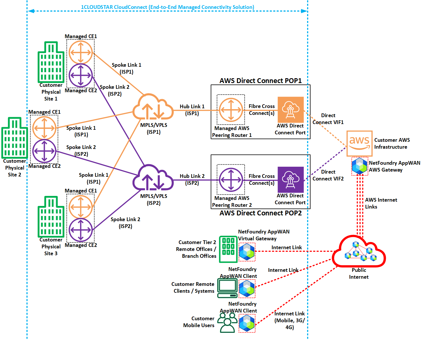 - Deliver 0-lead-time, on-demand, secure, high-performance and low-cost AWS Cloud Connectivity from almost anywhere in the globe via our next generation AppWAN CloudConnect solution powered by NetFoundry. This extremely agile, flexible and cost-effective solution works perfectly in tandem with our classic private-circuit based CloudConnect solutions and opens up new possibilities and options for you to connect your remote users, branch offices, customers or business partners to AWS. It is also ideal for temporary / short-term connectivity requirement for cloud migration, projects and DevOps user cases.